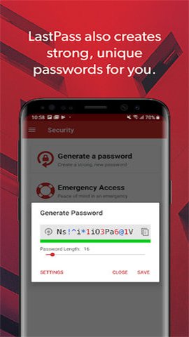 3、 LastPass还提供了多种安全保护措施,例如使用内置密码生成器一键创建安全密码、将信用卡号和健康保险卡等敏感信息安全地存储在加密保险库中、安全方便地与他人共享密码等。