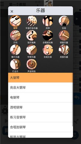 4、 在三分作曲App中,用户可以选择使用100多种不同类型的乐器,包括钢琴、吉他、小号、小提琴、音乐盒、颤音、陶笛、风笛等稀有乐器。