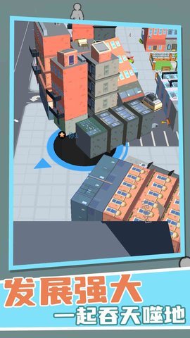 2、你可以通过吞噬场景中的建筑道具来扩张自己,并根据大小选择要吞噬的物品。