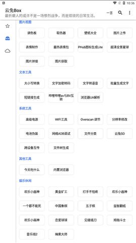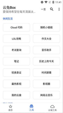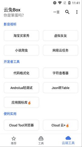 云兔Box最新版App是一款功能丰富、简单实用的工具盒子。它包含了与日常生活相关的多种工具,涵盖了休闲生活、图片视图、文本工具、系统工具等多个分类。不仅如此,云兔Box最新版App还提供了专属的云端工具,可以免费使用。