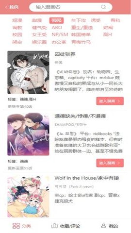 3、用户打开App后,会看到精心设计的主页,上面有各种分类的漫画推荐,用户可以根据自己的喜好选择不同的分类进行浏览。