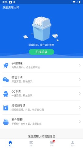 1、 除了手机清理功能,深度清理大师还具备手机性能管理功能。