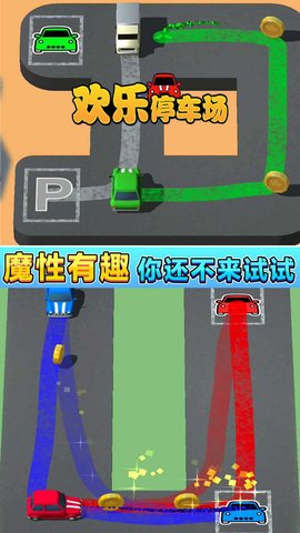 1、 欢乐停车场是一款益智欢乐的画线停车挑战游戏。