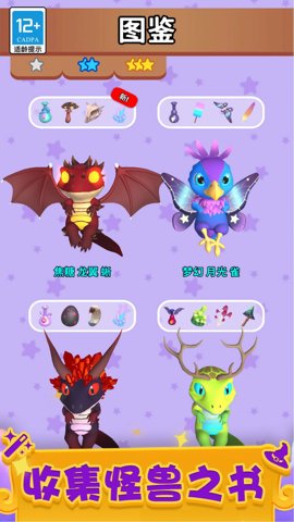 1、怪兽研究所趣味版采用了精美的卡通画风,拥有多种可爱的怪兽。