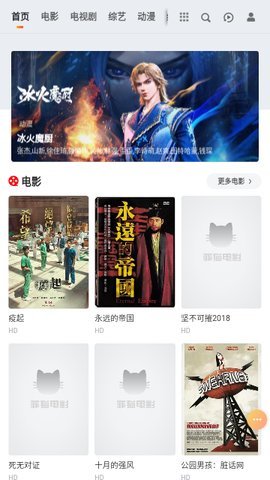 2、此外肥猫电影App还采用了特有的云播放模式,连接到互联网资源库,用户只需要轻触一下屏幕,就能够搜索到想要观看的电影。