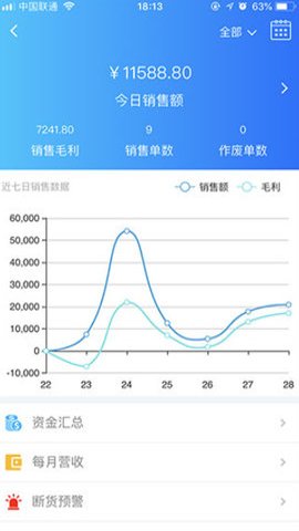 2、同时速订货还提供手机报表,可以清晰地展示销售汇总、毛利、畅销和库存排行报表。