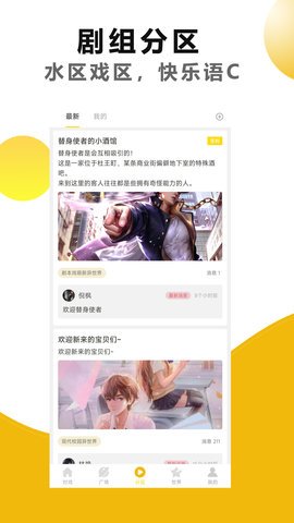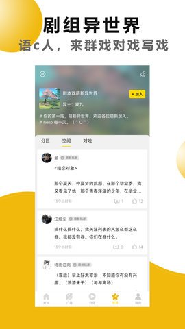 2、剧本戏App具有作品区和剧本区等功能,你可以在这里观看其他人的作品,也可以与他人共同编写脚本,共同创作属于你们的故事。