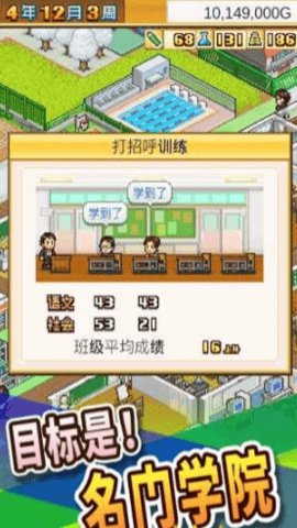2、 玩家可以充实校园设施,进行各种课题挑战,还可以增加入学志愿者。