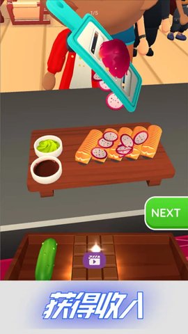 2、玩家需要完成各种烹饪任务,例如卷寿司、切鱼鳞、切鱼、磨奶酪、做米饭等等。