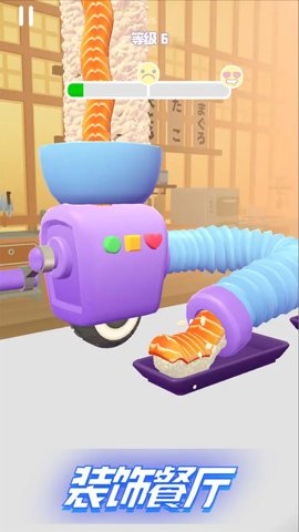 3、玩家可以选择不同种类的寿司材料将它们连接在一起,制成全新的寿司,通过使用各种配件快速制作优质食品来满足客户。