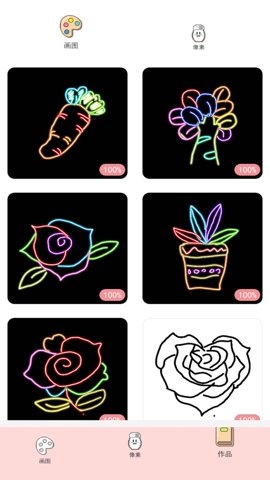 3、所有完成的绘画作品都可以显示在作品库中,并记录自己的每一个精彩画框。