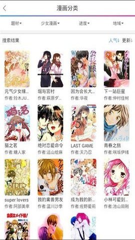2、这个应用拥有几十个漫画题材分类,用户可以根据自己的兴趣随意选择观看不同种类的漫画。