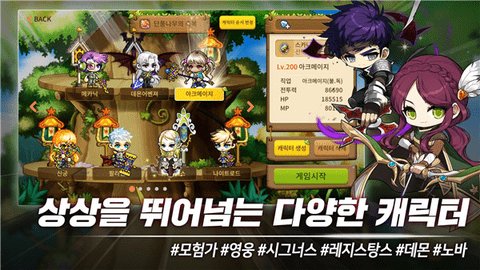 2、在冒险岛M中,你可以完全掌控自己的角色,搭配各类技能和培养人物属性,大干一场。