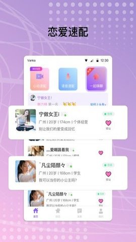 4、在首页中,用户可以查看速配的专区和推送的用户列表。