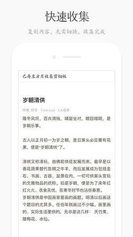 2、它支持从各种应用中收集内容,并与在线网站和电脑浏览器版的方片收集实时同步。