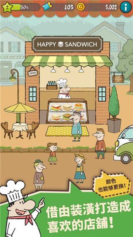 3、 在这个全新的模拟经营游戏中,玩家将能够不断研究制作出独创的美味三明治,让客人们更加满意。