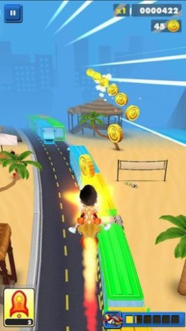 1、游戏中,你可以闯过各种障碍,还能收集金币和道具,增强奔跑能力。