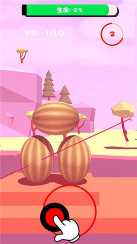 1、游戏的目标是精准地切到水果,以达成通关要求并获得更高的游戏分数。