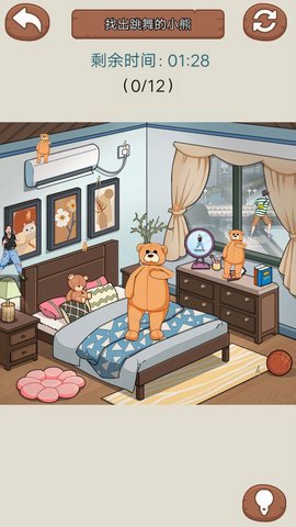 2、 在秀儿是你吗这款游戏中,玩家需要在找到跳舞的小熊的图片中进行观察和寻找。