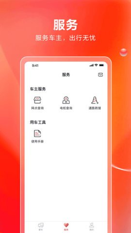 2、用户可以通过该应用轻松找到所需的服务,并且可以随时了解车辆的使用手册。
