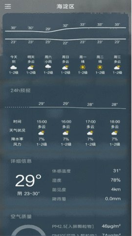 1、它能够为你提供当前和未来几天的天气预报,包括温度、湿度、天气状态、降水概率等详细信息。