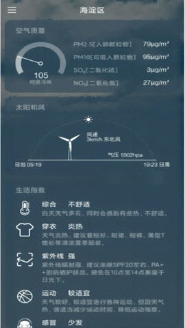 1、 纵横天气还提供了更加详细的信息,如空气质量、紫外线指数、日出日落等。