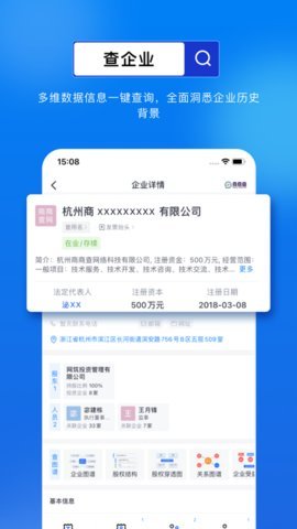 4、查企业功能则全面展示企业信息,实时监控企业风险。
