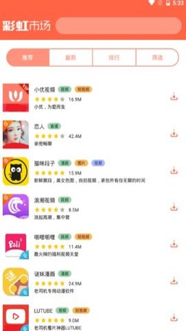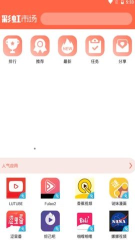 1、 彩虹市场App每天都会上新超级多的热门游戏,首页里可以免费提供各种游戏资源,包括网游、单机必玩榜单分类等。