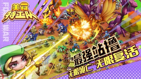 美食特攻队是一款独特的生存IO类型手游,游戏中拥有超过200种技能和宝物供玩家选择,搭配起来非常有趣。与传统的割草游戏不同,这款游戏的英雄可以无限死亡,甚至死亡都是一种玩法,只有场上的怪物数量超过上限才会导致失败。游戏的画面清新靓丽,加上呆萌可爱的食物特工,让玩家可以组建强大的阵营。
