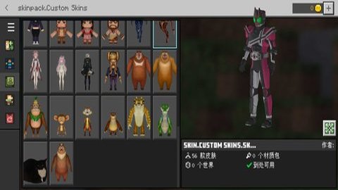 3、皮肤可以有不同的外观,包括动物、怪物、玩家和其他虚构人物。