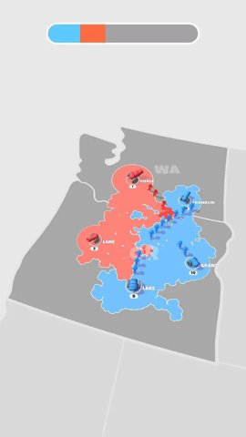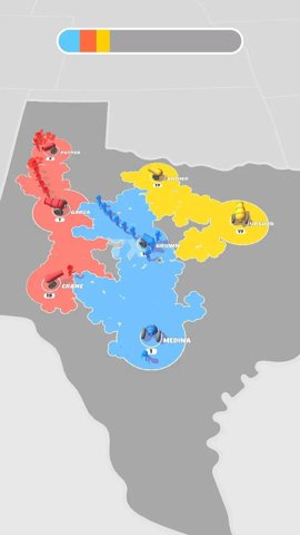 2、玩家需要代表某种颜色势力,通过不断点击屏幕,让小人从大炮中射出来,占领更多的领土面积,以获得胜利。