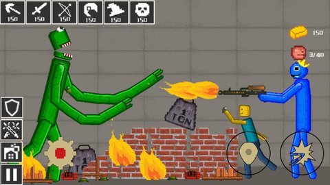 1、玩家可以利用木箱子、炸弹、武器等各种丰富的道具,与不同的甜瓜火柴人开启一场场激烈的战斗。