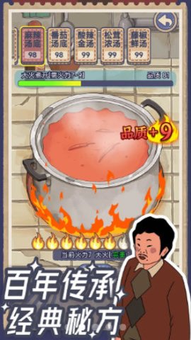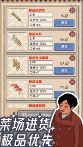 3、你需要不断升级购买店内设施,熬汤,进货,研发新的菜品,解锁更多的顾客。