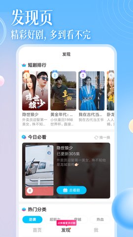 1、无论你喜欢类型的短剧,这个软件都能帮助你找到,并且提供原创内容,让用户能够尽情观看,享受前所未有的看剧体验。