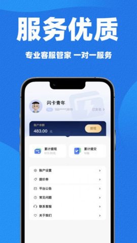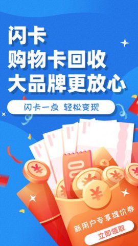 4、闪卡回收购物卡回收App是一款专业、便捷、安全的购物卡回收软件,拥有简洁直观的用户界面,操作简单易懂,能够为用户提供全面的卡片回收服务。