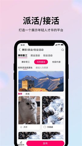 3、用户可以在软件上发布自己的才艺或者寻找兼职机会,展示自己的才华和能力。