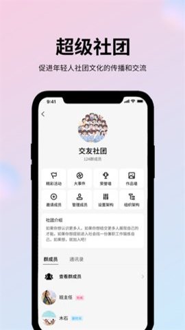 3、它不仅满足了用户的社交交友需求,还为用户提供了展示自己才华和能力的平台,促进轻人社团文化的传播和交流。