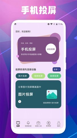 1、将软件和电视连接到统一的WiFi进行连接,连接成功后就可以投屏了。