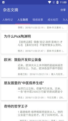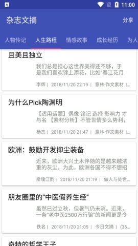 2、 杂志文摘App汇集了大量优质的文案,不论你想寻找励志的内容,还是想学习、提升自己的技能,都能在这里找到合适的文章。