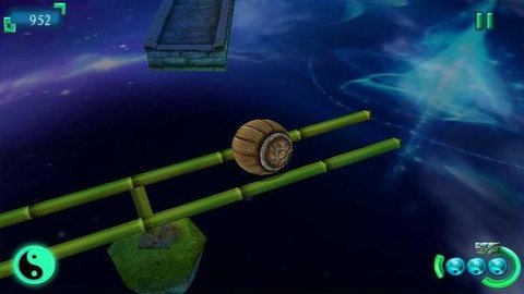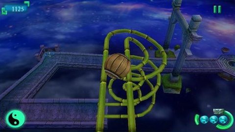 2、球在古朴的八卦砖石轨道上行进,身外则是风云变幻的浩瀚宇宙,让人顿生心旷神怡的感觉。