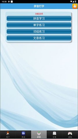 3、根据自己的需求,用户可以点击屏幕下方的相应按键,进入对应的打字练习界面。