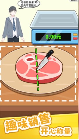 2、玩家需要用手指滑动屏幕,将刀具切割食物,然后称量并打包给客户。