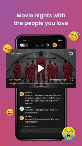 1、此外Teleparty还提供了实时讨论剧情的功能,你可以邀请小伙伴一起观看影视剧,并在观看过程中进行实时交流和分享想法,增添观影的趣味性。