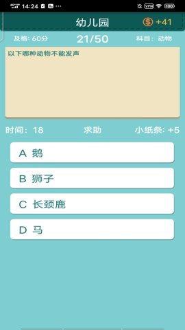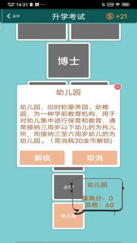 3、在升学考试模式中,玩家需要回答不同等级的,从幼儿园毕业到高中毕业,每个等级的难度都不同,可以提高玩家的知识水平。