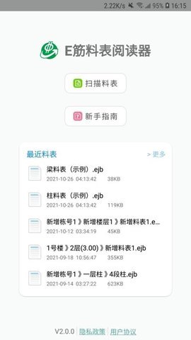 4、 使用料表阅读器App,用户可以打开E筋的钢筋表文件夹,选中.ejb后缀的料表,并通过qq或发送到手机。