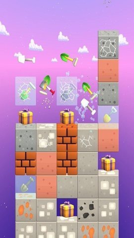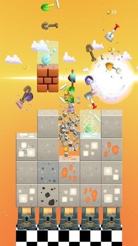 2、玩家可以通过合成铲子来解锁更加强大的铲子,这些强大的铲子能够轻松铲除坚硬的砖块。