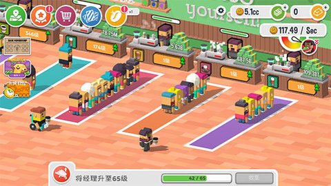2、直到有一天,你可以将所有柜台升级完毕,游戏才真正开始进入正轨。