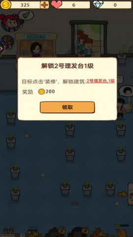1、在这款有趣的经营手游中,玩家可以建立属于自己的理发王国。