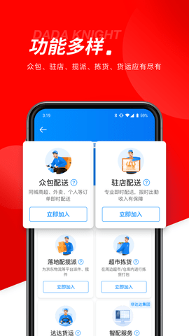 达达秒送骑士已经覆盖全国上百个城市,拥有数百万骑士和数十万优质商家入驻。这个庞大的网络让用户有更多的接单机会,也为商家提供了更便捷的配送服务。如果你想要成为一员,可以通过骑手官方微信进行咨询和报名。
