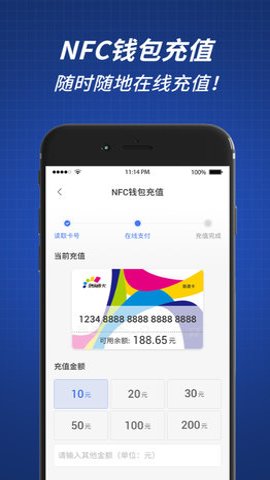 2、同时用户还可以通过NFC钱包充值功能进行在线充值,省去了跑腿的麻烦。